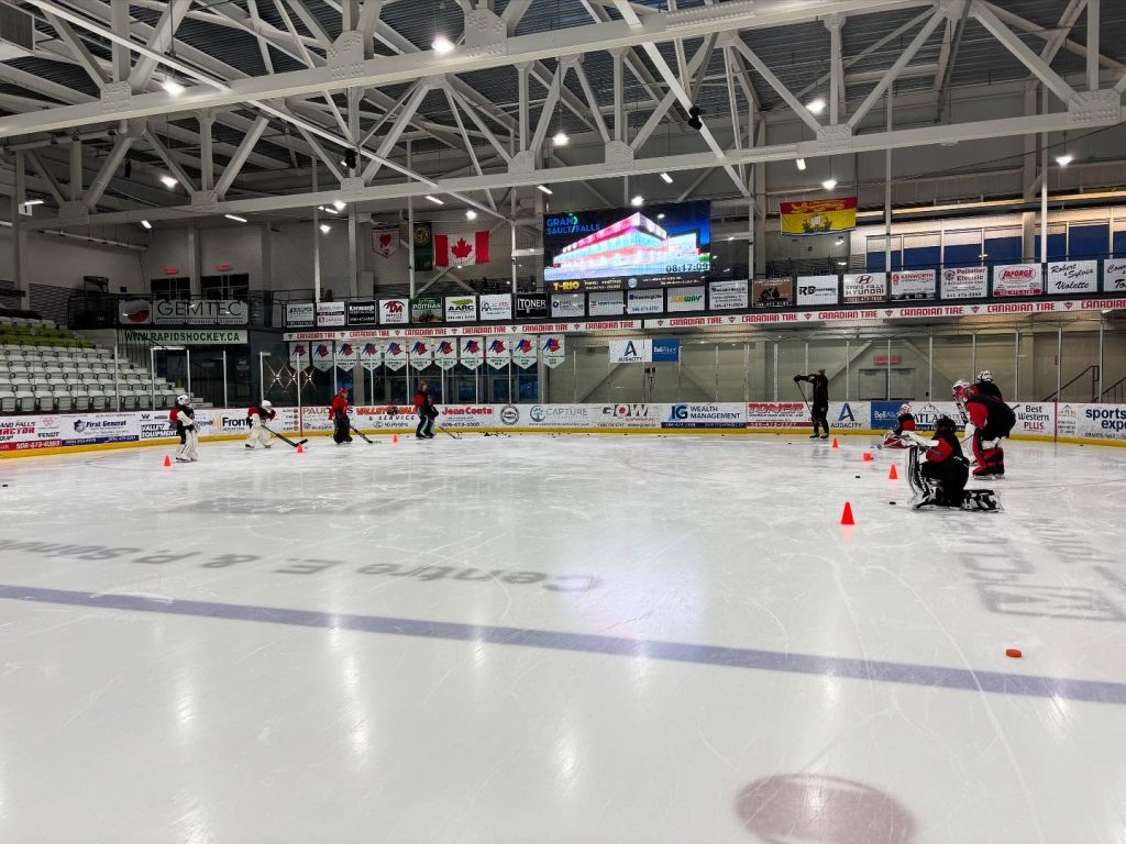 Groups are subdivided into to mini groups on the ice – each session includes 45 minutes of skating + Puck handling and 45 minutes of tracking drills , including colored pucks.